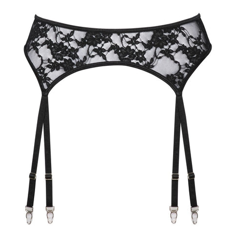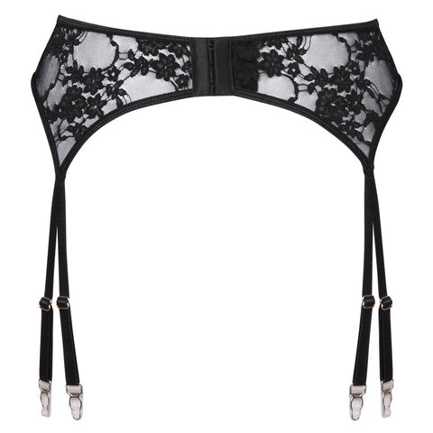 Undeniably seductive! Black suspender belt from Cottelli LINGERIE made of black floral lace with silver-coloured details. It is soft and stretchy for maximum comfort. With a total of 8 adjustable suspender straps (4 pairs). The hook fastener at the back can also be adjusted to fit. 90% polyamide, 10% spandex. Stockings not included.