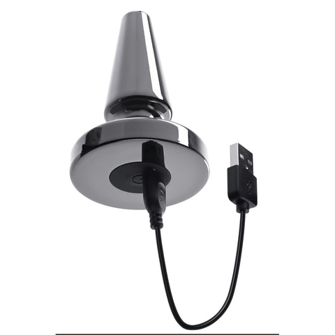 Discover the slippery, sleek feel of metal with this vibrating plug that enters like a dream! A tapered, rounded tip gives way to a satisfying yet comfortable girth for that extraordinary full feeling thats hands-free when you use the 2-sided silicone suction cup base. Turn on the 7-speed motor to amp up your experience with delicious buzzworthy vibrations from mild to wild! Rechargeable, easy to clean and completely water submersible - so you can enjoy playtime in the bath or shower as well! Vibrating metal plug with suction cup base Tapered shape with a rounded tip 7 vibrating speeds and functions Powerful 2-sided suction cup sticks to toy and surface Easy to use 1-button control Plug made from black chrome-finished aluminium alloy The base and button are made from silicone Length 4.41 inch, 11,2 cm Depth 3.52 inch, 8,9 cm Width 3.52 inch, 8,9 cm Insertable length 3 inches, 7,6 cm Insertable diameter 1.19 inch, 3 cm Phthalate and latex free Magnetic rechargeable, USB cable included Waterproof and submersible