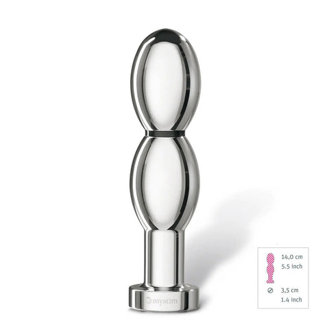 Good old Shakespeare had no idea that one day Oh Thello would delight the general public. The appealingly shaped dildo with a double oval invites you to a real comedy, to spoil you or your partner vaginally or anally. The plump forms irritate with every movement and every little tensing of the muscles. So much can be revealed there are lying ovations for the orgasm. The only slightly curved, smooth aluminium can be inserted easily and deeply. Easiest if you use a water-based lube. The Oh Thello will literally electrify you. Depending on the setting, you will feel a gentle tingling, rhythmic pulsing or sensual thrusting. Its not a magic trick, its physics. The separation of the plus and minus poles takes place after just a few centimetres. To activate the two poles, you need a stimulation current devices such as the Mystim Tension Lover or the Mystim Pure Vibes. If Oh Thello starts to boil, so will you. How long and intensively you want to be pampered is up to you. You can enjoy the tingling, pleasurable pleasure for hours. Or vary and intensify the stimulation so that you are quickly driven to sensational climaxes as you like it. If you heat the Oh Thello on the heater before use or cool it down in the fridge, it will make you feel like hell. Genuine craftsmanship, high-quality, hygienic medical aluminium, carefully polished smooth, rounded off with an elegant plastic handle. Yes, you always want to have Oh Thello at hand. A Mystim Power Box is needed to power the Oh Thello