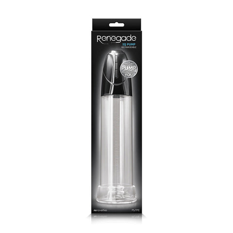Enhances your pumping through innovation and effortless use with Renegades IQ Smart pump. Automatically adjust vacuum pressure using preset controls for desired results every time. Rechargeable and sturdy, the IQ Smart pump is the most advanced toy of its kind available today. Suitable with all lubricants. Product dimension 30.6 x 7.8 x 7.8 cm Total length 30.6 cm Diameter 6.4 cm Insertable length 20 cm Speed modes 3 Body-safe Material ABS Plastic TPE
