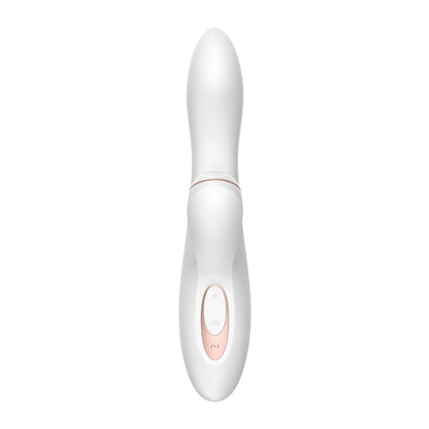You enjoy your Satisfyers pressure waves, but you miss the sensual vibrations of a classic lay-on vibrator? The new Satisfyer Pro Plus Vibration combines the coveted, stimulating pressure waves with sensual vibrations, gifting you an incomparable pleasure experience! Time for the ultimate in sensation this special Rabbit is your muse, plying you with orgasms for your diary of superlatives. In the typical style of the Satisfyer family, it stimulates your love bead touch-free through pressure waves, providing deeper stimulation which leads to multiple orgasms. This talent alone has conjured up insatiable smiles on womens faces all over the world. But every cake deserves icing, and in accordance with this philosophy, the Satisfyer Pro G-Spot Rabbit was developed. It expands the unique feeling of clitoral pressure wave stimulation to include an additional G-spot massage. It could well be worth taking a few days off work and spending them in bed, together with this innovative pleasure companion. The ergonomic shape and silky-soft silicone cover of the Pro G-Spot ensure that it sits comfortably in your hand. Once the tempting design has seduced you, it slides smoothly inside you. The flexible, elegantly curved shaft clings skilfully to your curves and seeks your G-spot with a voluminous tip containing a powerful motor. A pleasurable bouquet of 3 vibration intensities and 7 rhythms provides you with deep vaginal vibes. Meanwhile, the clitoral stimulator caresses your love bead with sensual pressure wave stimulation. The round silicone attachment encircles your clitoris as you are brought to a touch-free climax. This gives you a sensation similar to that of oral stimulation rapid change between suction and pressure is available in 11 intensities simply use the intuitive controls to switch up and down between settings. A third button controls the vibration setting, enabling countless seductive combinations of settings. The Satisfyer Pro G-Spot is also extremely quiet, although it may well coax a few noises out of you! The waterproof finish means that it is also the ideal bathing companion, inviting you to enjoy sensual pleasures in the shower or bath.